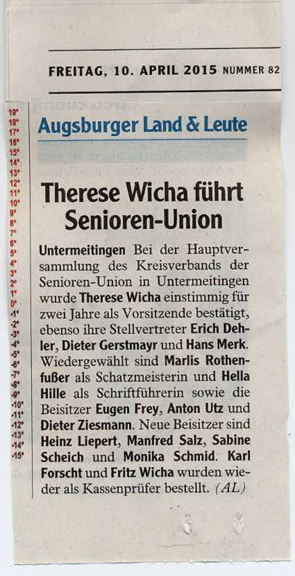 der "Senioren Union Augsburg Land" in den Beziksvorstand gewählt!